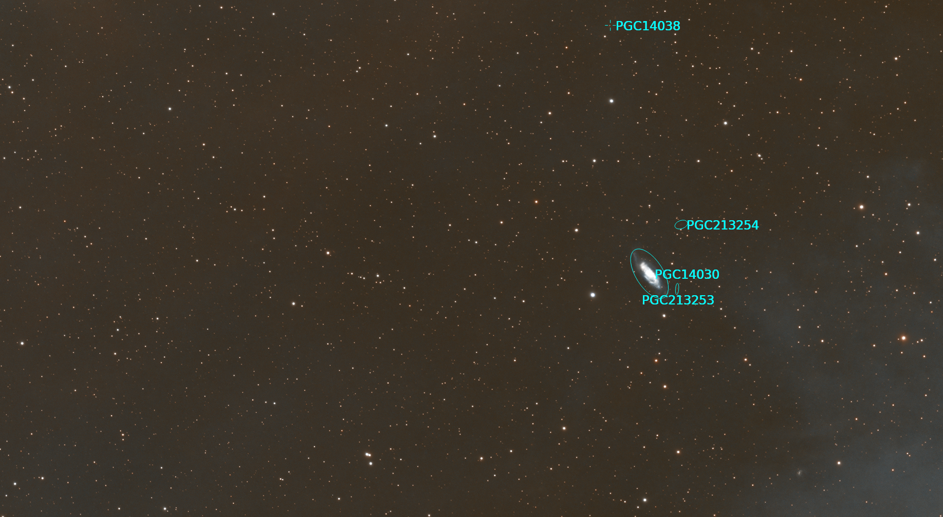 성도를 이용해 주석을 달아보면 성운 주변에 조그마한 은하들이 있습니다.
